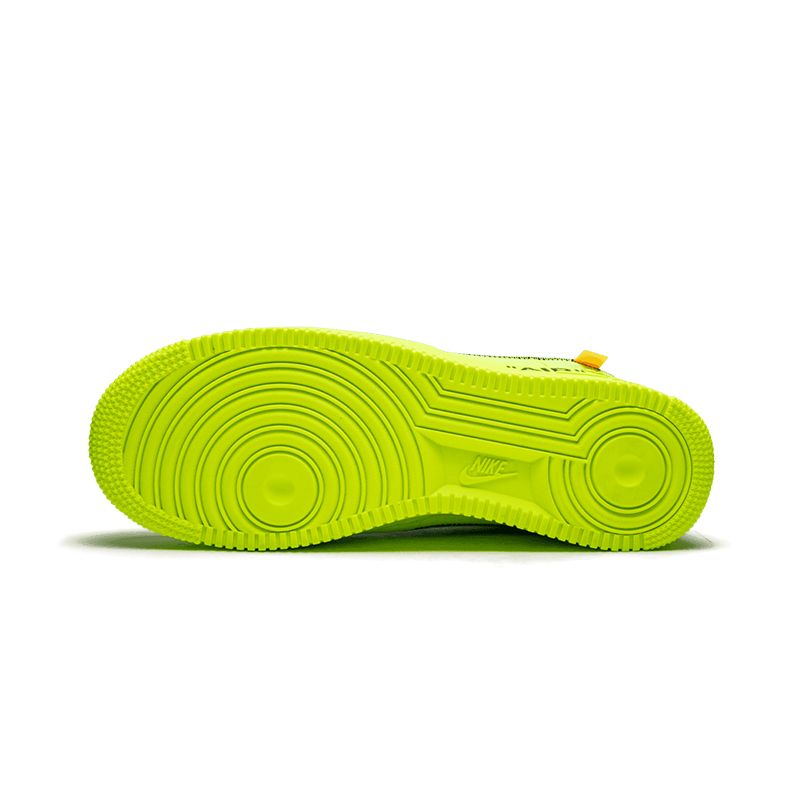El Nike Air Force 1 Off-White Volt es una colaboración entre Nike y Off-White, diseñada por Virgil Abloh, que destaca por su llamativo diseño en color volt (un verde fluorescente). Esta versión mantiene la silueta clásica del Air Force 1, pero con una estética deconstruida que incluye detalles como costuras expuestas y el característico zip tie en naranja, muy típico en los modelos de Off-White.